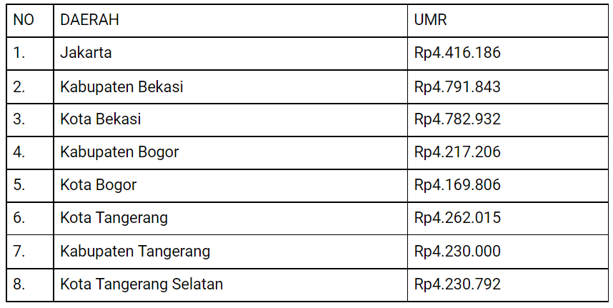 Sumber dari Kompas.com, inilah rincian UMP 2021 di wilayah Jabodetabek.
